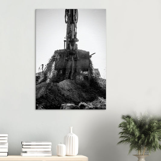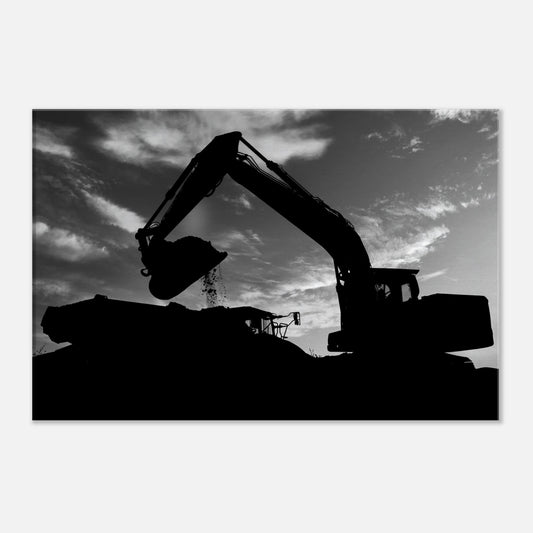 Leinwand Ladespiel Kettenbagger Dumper - S/W
