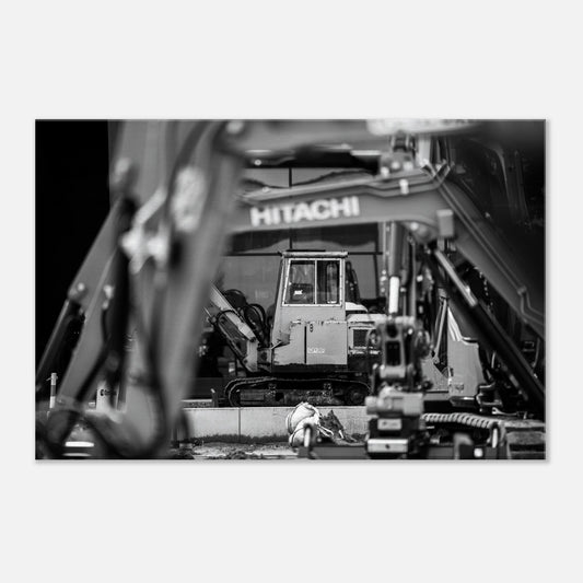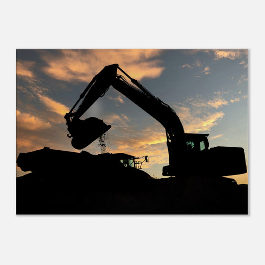 Leinwand Ladespiel Kettenbagger Dumper - S/W